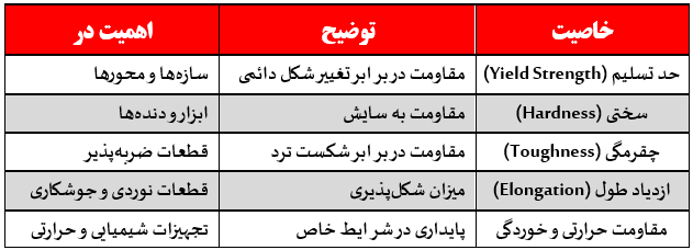 خواص مکانیکی مهمی که آلیاژها به فولاد میدهند نیز باید در نظر گرفته شود:
