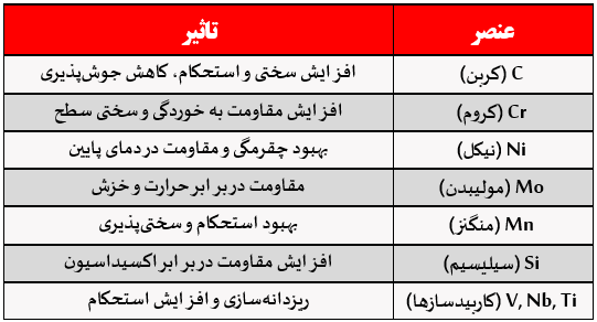 هر عنصری که در آلیاژ استفاده میشود عملکرد خاصی دارد که باید با آن آشنا باشیم