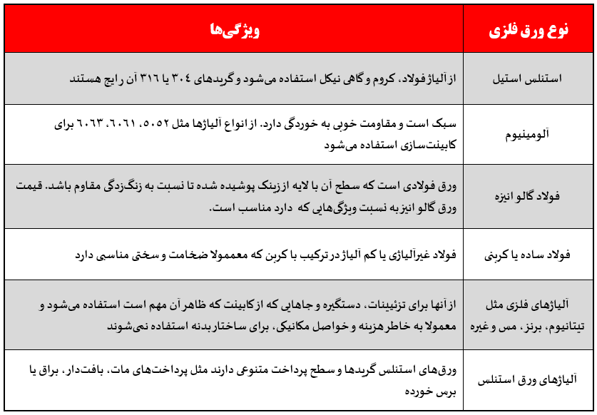 4. نکات نگهدای از کابینتهایی با ورق گالوانیزه