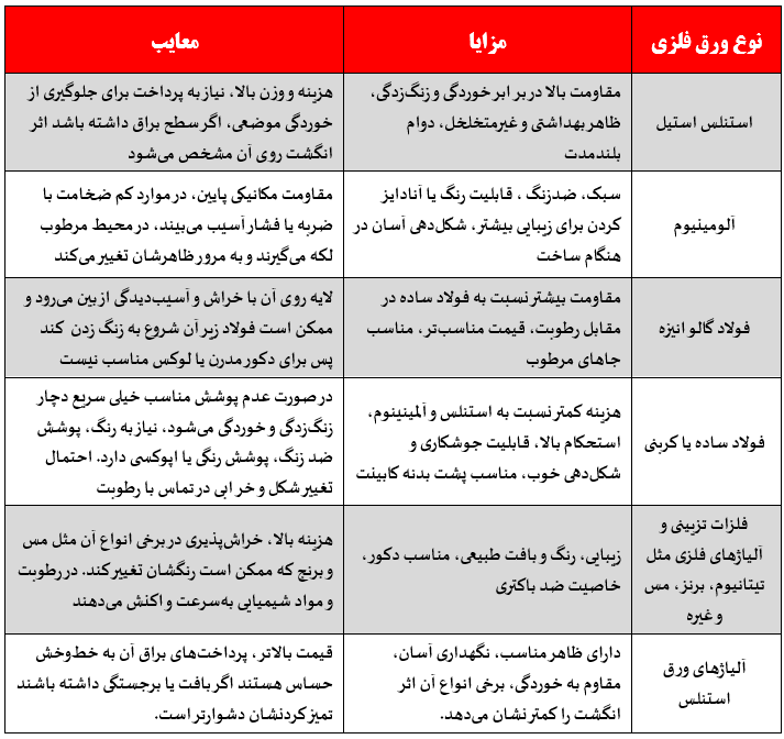 2. کدام یک از انواع فلزاتی که برای ساخت کابینت استفاده میشوند مقاومت بیشتری به زنگزدگی دارند؟